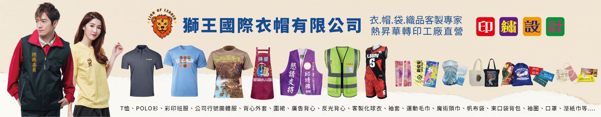 獅王國際衣帽提供大小團體衣帽訂單承接,衣帽問題交給..衣帽專家..。獅王國際衣帽有限公司 客戶累計3千多家,豐富的團體衣帽經驗,大小團體衣帽訂單承接,衣帽問題交給..衣帽專家..獅王國際衣帽有限公司 感謝 大型活動 台東炸寒單衣帽承製 台灣自行車協會衣帽承製 賓士汽車帽子承製 福斯汽車帽子承製 雅芳帽子承製 國軍602衣帽承製 國軍586衣帽承製 退輔會帽子承製 新社花海帽子承製 新竹衛生局帽子承製 台北市環保局帽子承製.....